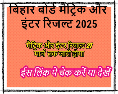 - 27 मार्च 2025 को बिहार बोर्ड के अध्यक्ष और शिक्षा मंत्री इंटर का रिजल्ट जारी करेंगे।
